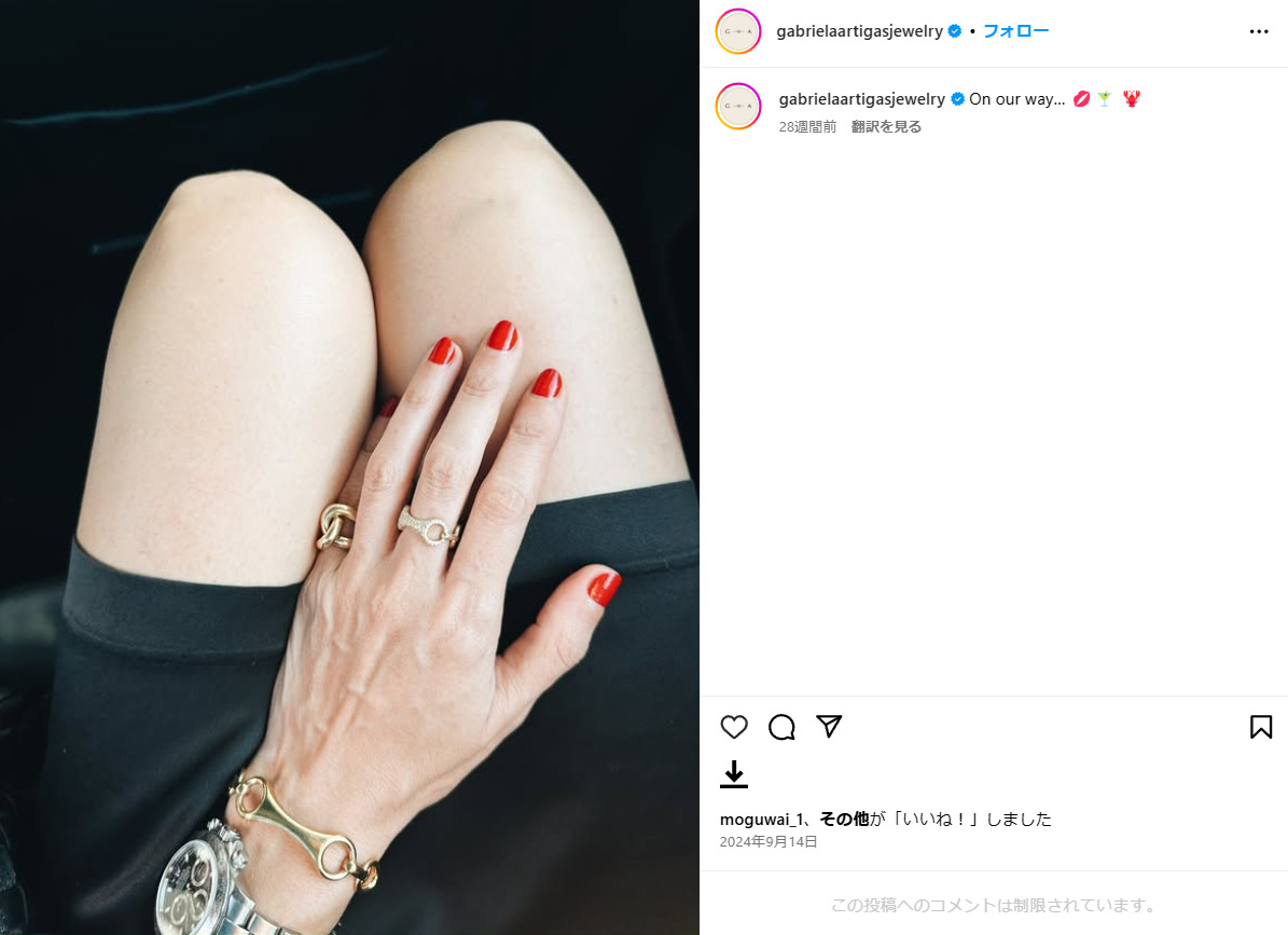 リングもガブリエラアルティガスで、これは50歳の誕生日に自分自身へ購入して以来愛用中♪