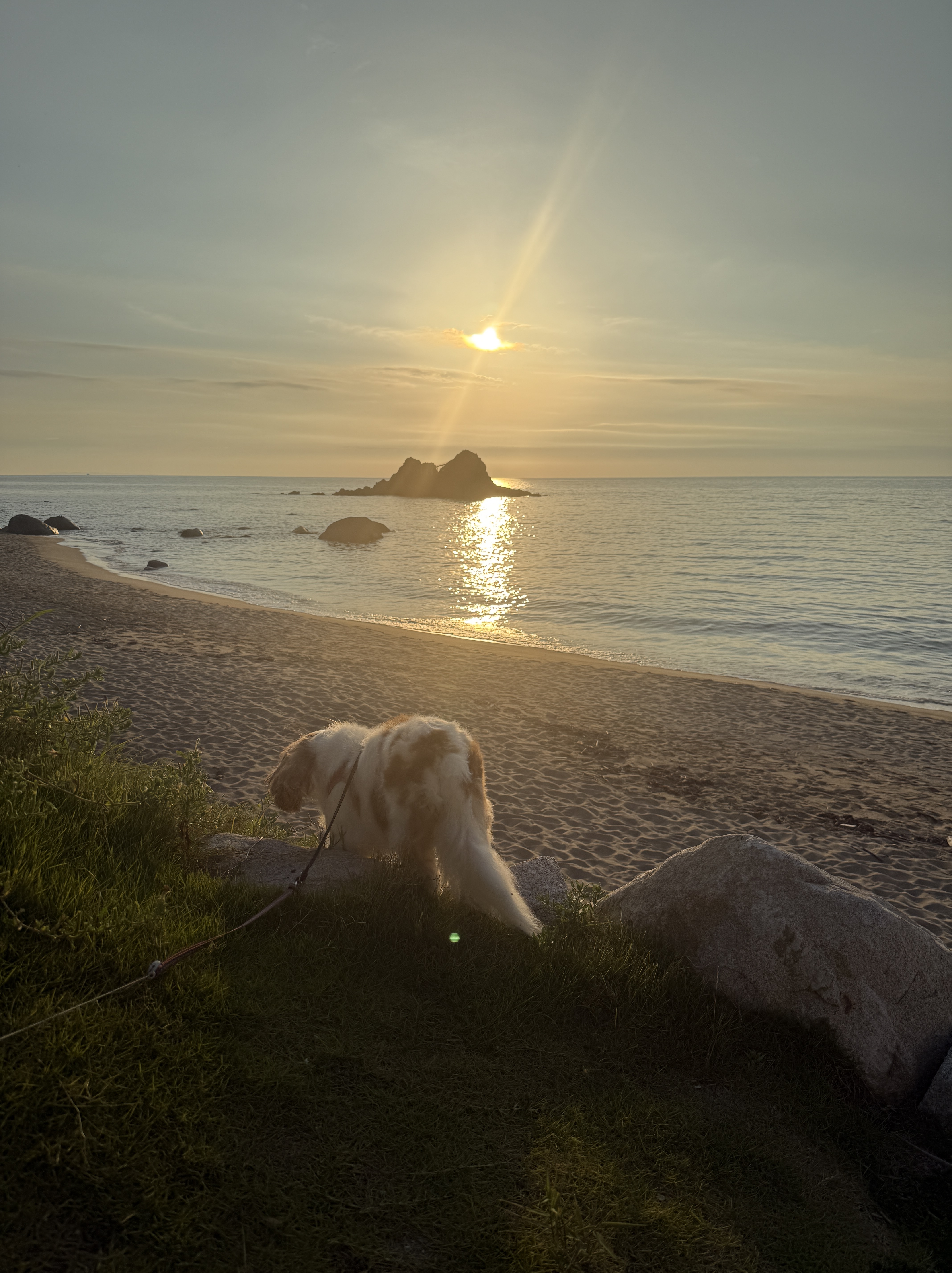 週末の暑さが和らいだ夕方にまたまたエルちゃんを連れて海へいってきました♪